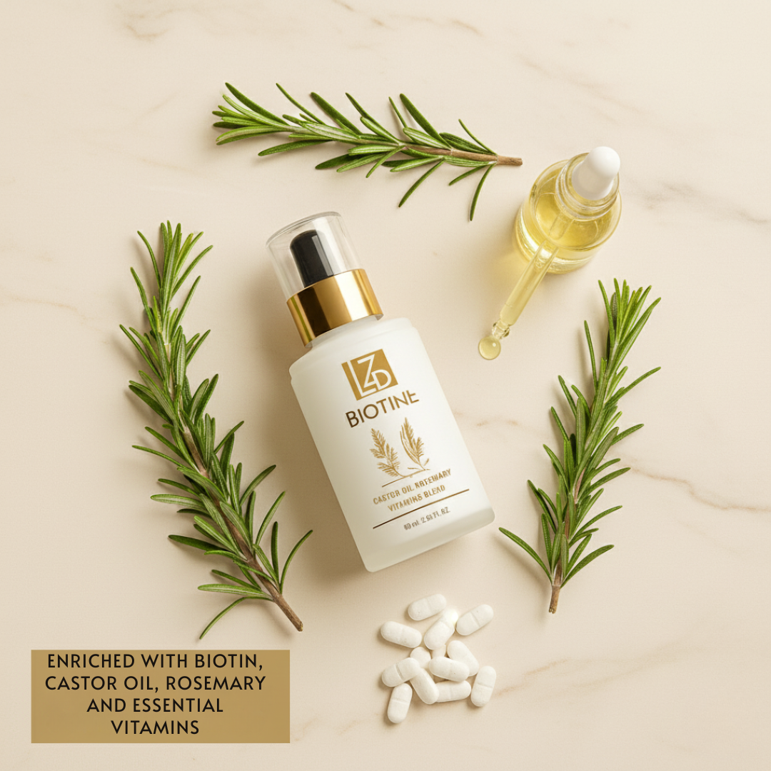 Une formule concentrée à base de biotine, d’huile de ricin, de romarin et d’un mélange de vitamines essentielles, conçue pour offrir à vos cheveux un soin optimal.