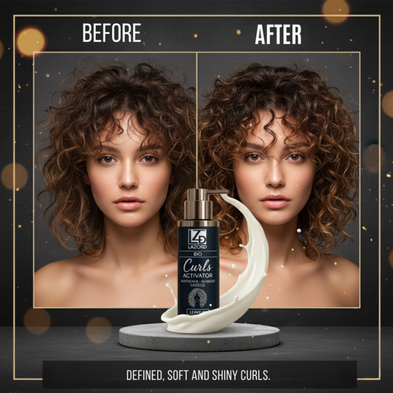 Le leave-in activateur de boucles Lazord est l’étape clé de la routine. Appliqué sur cheveux mouillés ou légèrement humides, il hydrate en profondeur, définit les boucles et réduit les frisottis. Sa formule légère permet de garder des boucles souples, rebondies et bien dessinées, sans alourdir les cheveux.