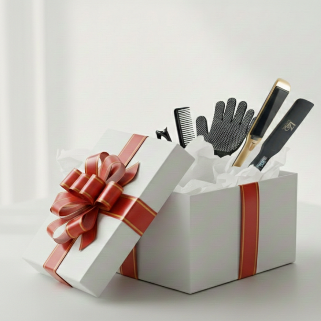 La box inclut également des accessoires pratiques, notamment des gants anti-chaleur, pour un coiffage confortable et sécurisé.