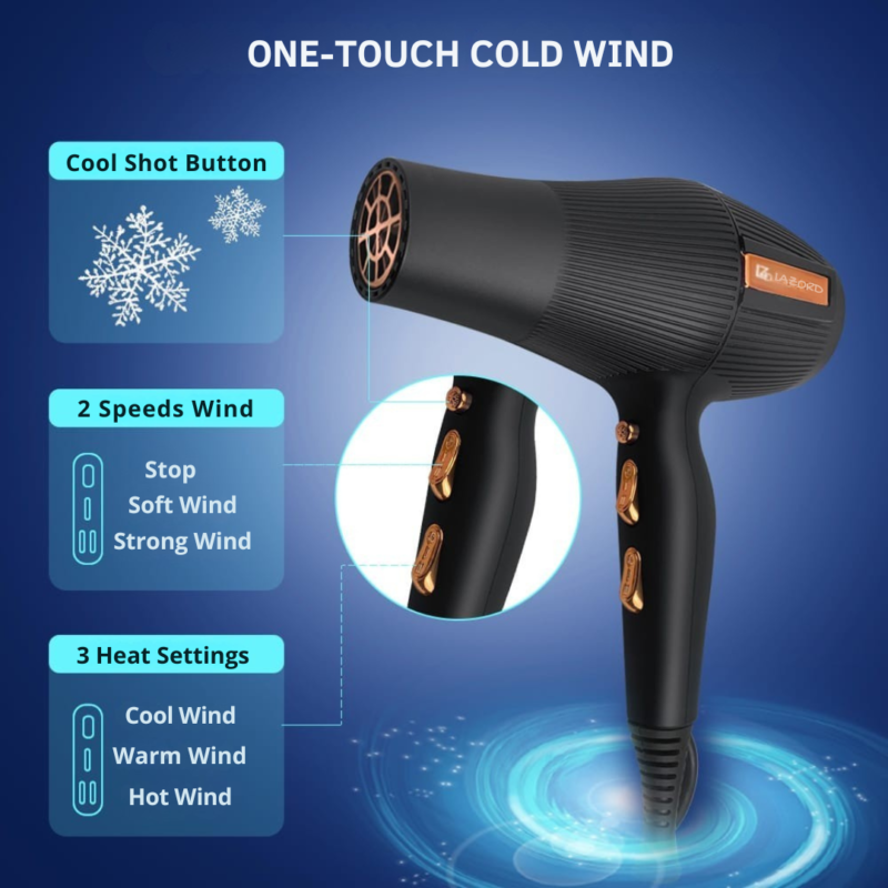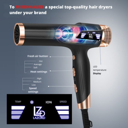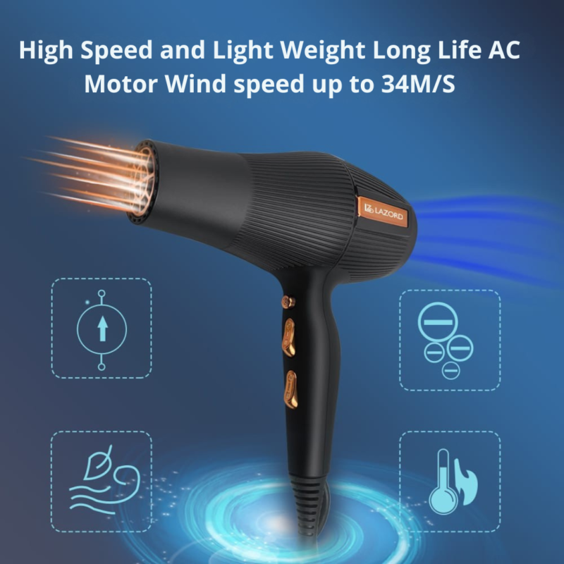 Profitez d’un séchage rapide et d’un coiffage parfait avec le sèche-cheveux professionnel Lazord. Doté d’un moteur AC puissant, de la technologie ionique anti-frisottis et de plusieurs réglages de température, il offre des résultats dignes d’un salon
